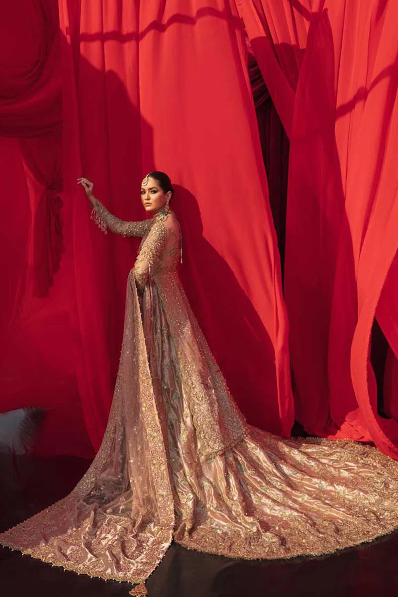 This exquisite ensemble transcends the ordinary with a gorgeous trail, symbolizing both divinity and grace. As you walk, the trail whispers elegance, leaving a lasting impression on all who witness your radiant beauty.