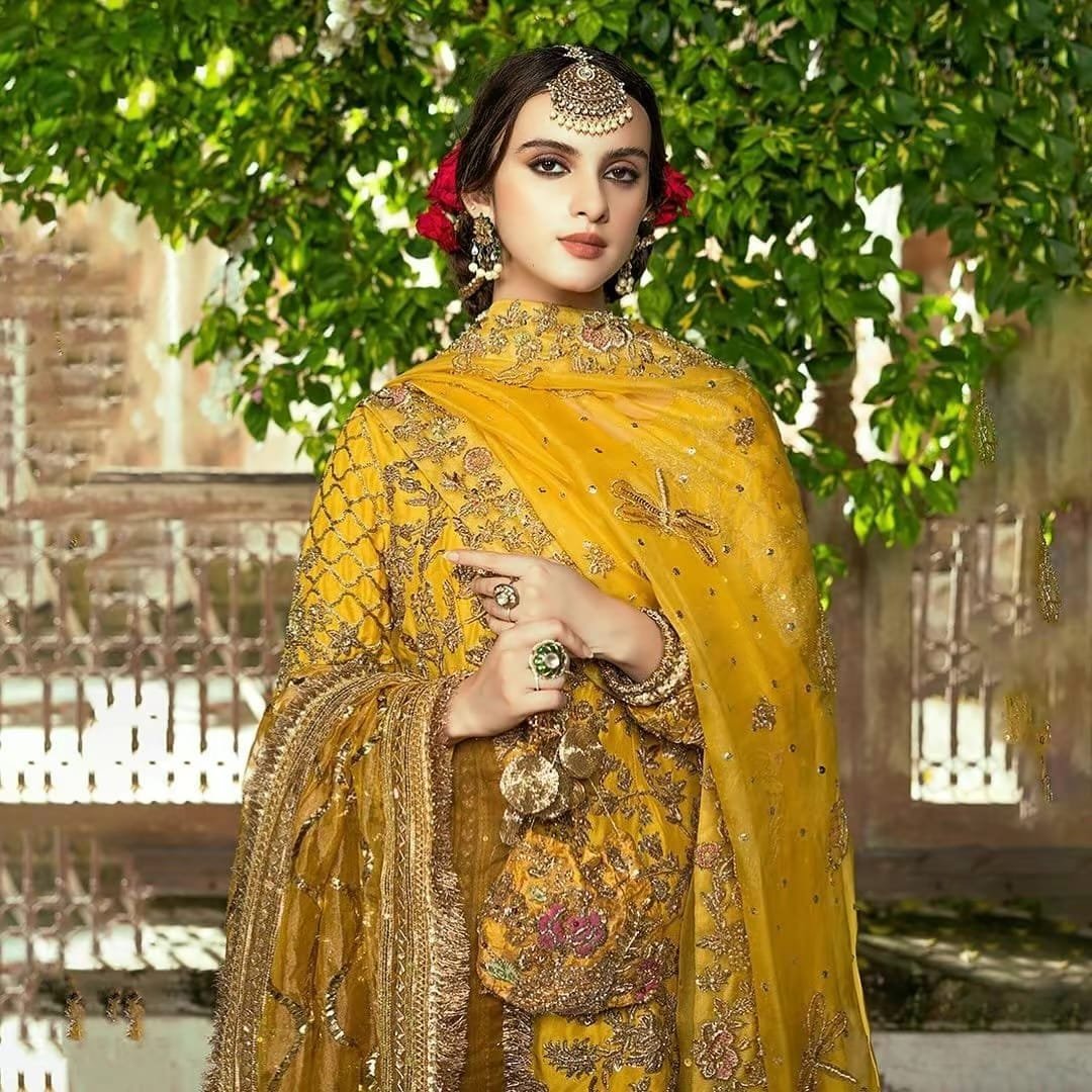 Step into the enchanting world of our Mesmerizing Mehndi Bridal Dresses, where tradition meets contemporary elegance for your unforgettable day. Adorned with intricate Mehndi-inspired designs, these dresses are a celebration of cultural richness and timeless beauty. The vibrant hues and exquisite detailing effortlessly capture the essence of this joyous occasion, ensuring you radiate charm and grace. Each dress is a masterpiece, meticulously crafted to make you feel truly special on your big day. Embrace the allure of Mehndi with our collection and embark on a journey of style and tradition, creating cherished memories that last a lifetime