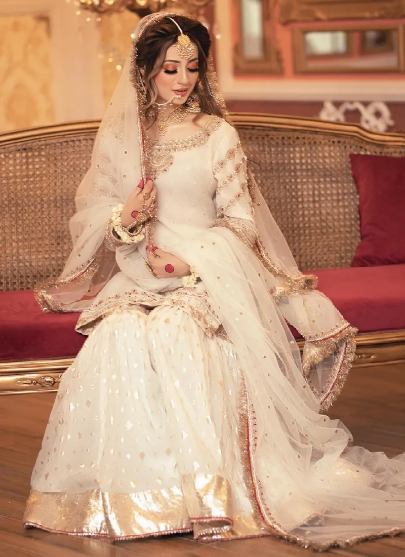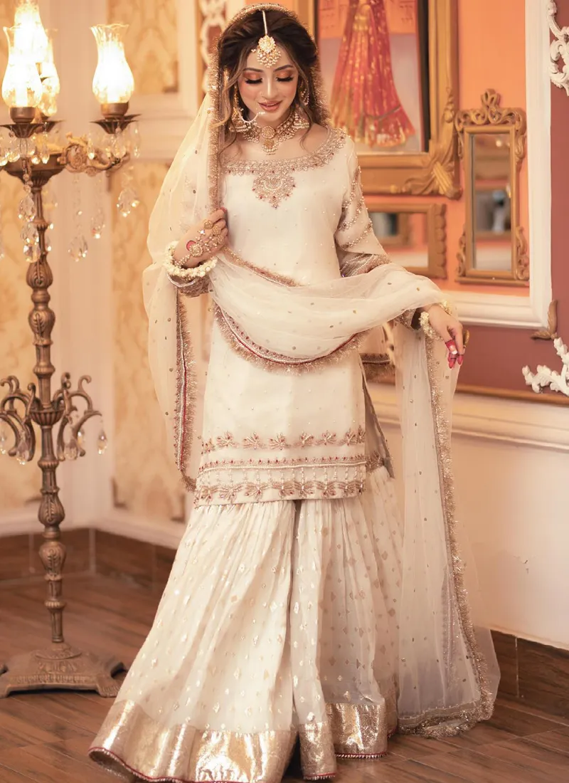 Features of Off-White and Golden Bridal Gharara:
